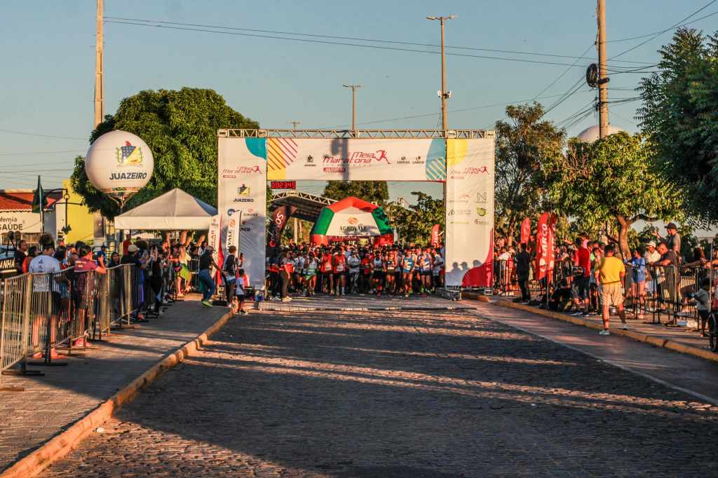 om largada ao nascer do sol, a 39ª edição da Meia Maratona Tiradentes reuniu mais de 600 corredores neste domingo (27) em Juazeiro/BA. A tradicional corrida, promovida pela Prefeitura Municipal, por meio da Secretaria de Cultura, Turismo e Esportes (Seculte) e em parceria com a empresa Agrovale, atraiu atletas de diversas partes do país para disputar as provas de 5km e 21km.