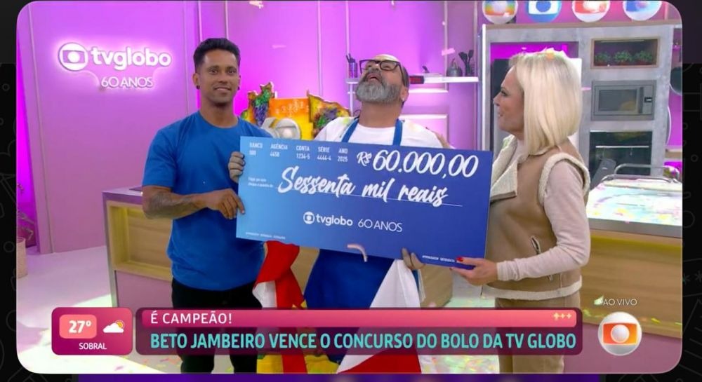A disputa contou com nove confeiteiros de várias partes do país, divididos em três eliminatórias, e apenas três chegaram à grande final. E entre eles, brilhou o nome de Beto Jambeiro, agora reconhecido como o criador do bolo que celebra seis décadas da maior emissora do país.