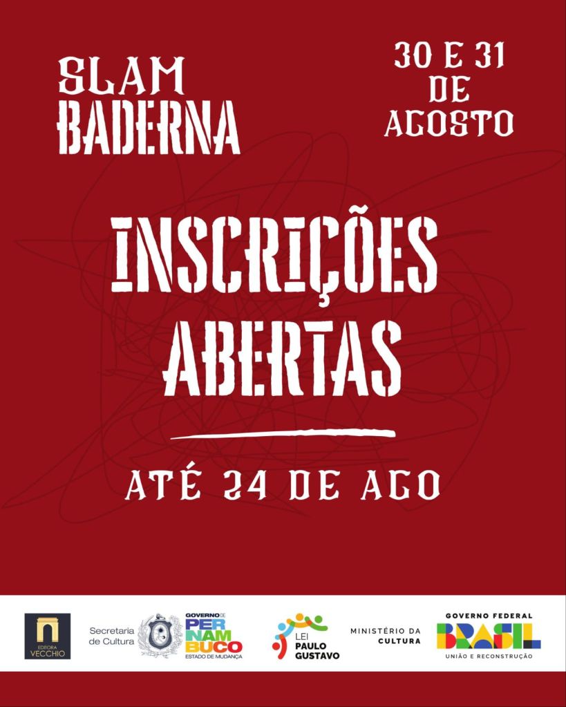 Poetas de todo o país terão a chance de disputar prêmios de R$ 1.000, R$ 600 e R$ 400 no Slam Baderna, a batalha de poesia falada que promete movimentar Petrolina (PE) com criatividade, resistência e potência artística. As inscrições são gratuitas e ficam abertas até 24 de agosto de 2025, exclusivamente pelo formulário online: https://forms.gle/JRsQZC7sRvUDXGFHA.