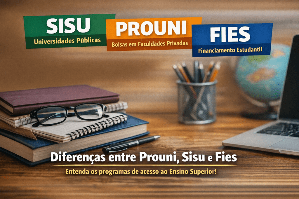 Enquanto o Sisu garante vaga sem mensalidade, o Prouni reduz ou elimina o custo da graduação privada, e o Fies funciona como um empréstimo estudantil.